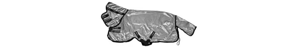 Protect your stock horse from insects with the new Amigo Stock Horse Flysheet. Made from a soft polyester material, this flysheet will keep your horse comfortable and protected. The innovative, silver reflective material helps protect your horse from harmful UV rays. This product is designed for the fuller shoulder and hip of stock horses and is cut in 2 increments to ensure the perfect fit.