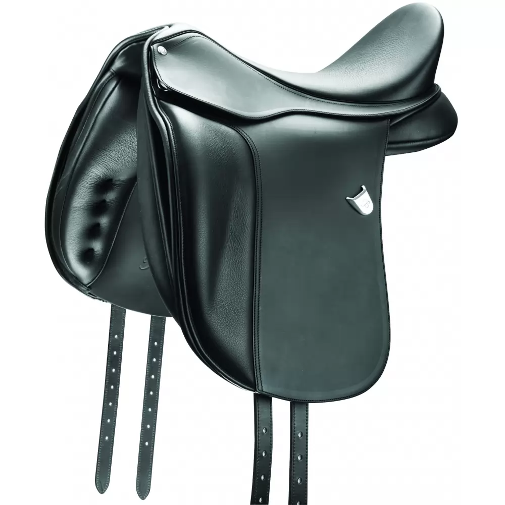 Beneath the traditional lines and elegant appearance, the Bates Dressage Saddle offers high performance, as innovative design and features offer increased support of your optimal dressage position. The Bates Dressage Saddle features a deep seat with a narrow waist and broad sitting area for greater support, and an Adjustable Ergonomic Stirrup Bar and Flexibloc system to support for your optimal dressage position.