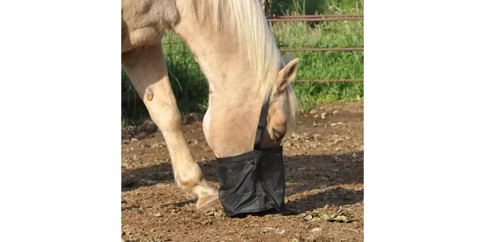 The Cashel Feed Rite Bag eliminates feed waste due to sloppy eating bullying and head tossing. No grain is wasted with thisspill-proof design.