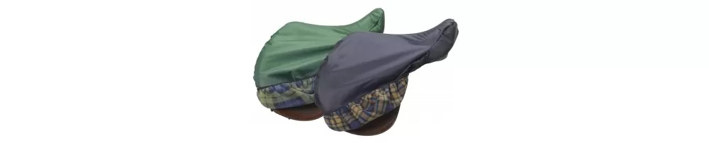 The Centaur 420D Waterproof Saddle Cover with Plaid Lining has a waterproof breathable solid color outer shell with a plush plaid lining.Â