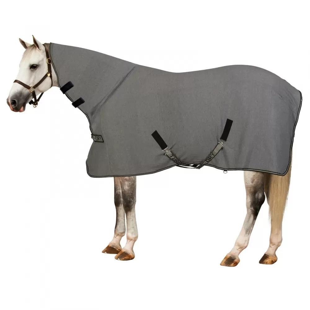 The CentaurŸ Turbo-Dry Fleece Sheet with Neck Cover is designed with a smooth outside material with non-pilling fleece inside working like a sweatshirt to keep your horse warm and dry.
