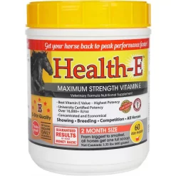 Developed by veterinarian Dr. Frank Reilly to provide senior horses and horses with neurological issues high levels of vitamin E to get them back to peak performance faster. Ideal for all horses, especially showing, breeding and competition horses. Health-E helps provide maximum beneficial support to the immune system, liver, skin and hair; helps build immunity to disease; and helps enhance muscle function and lessen muscle soreness. Encourages a shiny, healthy hair coat.