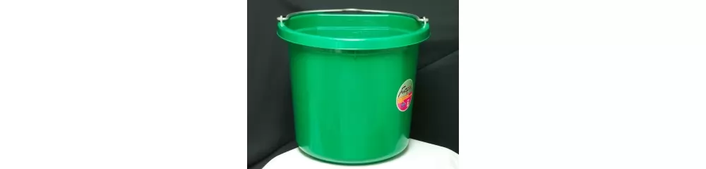 The 24 Qt Flat Back Bucket Feeder is made with a Fortalloy Rubber-Modified Polymer. Product is blue in color.
