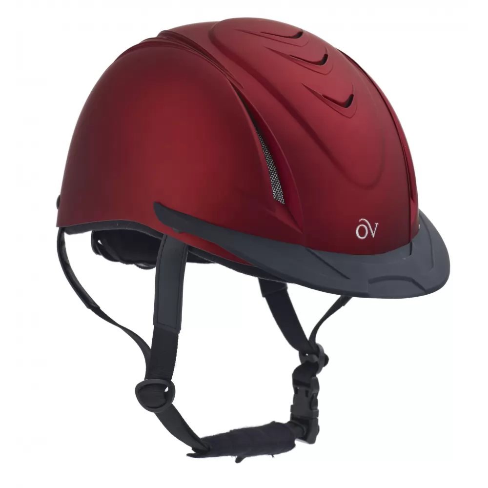 The Ovation Metallic Schooler Helmet is a lightweight, low-profile helmet from Ovation! Helmet features include a rubberized finish, an easy adjust dial for a snug fit, extra strong adjustment teeth for added helmet life, high flow vents to keep you cool, a removable washable liner, a removable breakaway visor and the exclusive YKK adjuster clip and bucklethat is positioned to stay off of the rider’s face for comfort. SEI certified to ASTM F1163-04A & CE certified to European EN 1384 Standards.