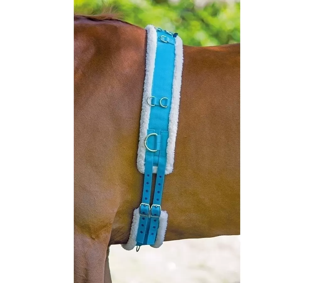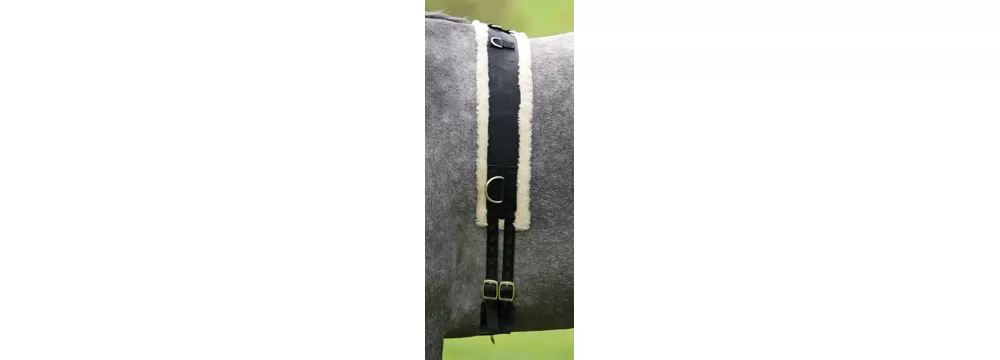 Nylon roller with 10 rings, fleece lining across the top and a girth that is adjustable on both sides.
