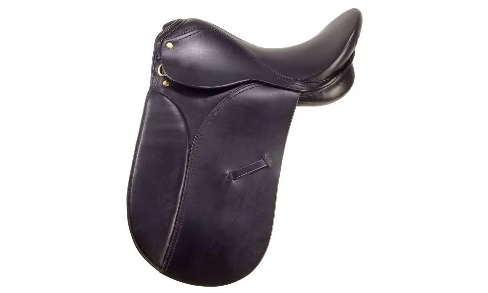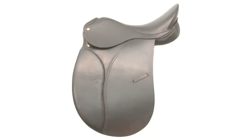 Made in the tradition of master saddle makers on a laminated tree with a narrow deep seat providing comfort and perfect position. Self molded padded flaps allow sure contact for the rider. Long billets require dressage girth. Safety stirrup bars.