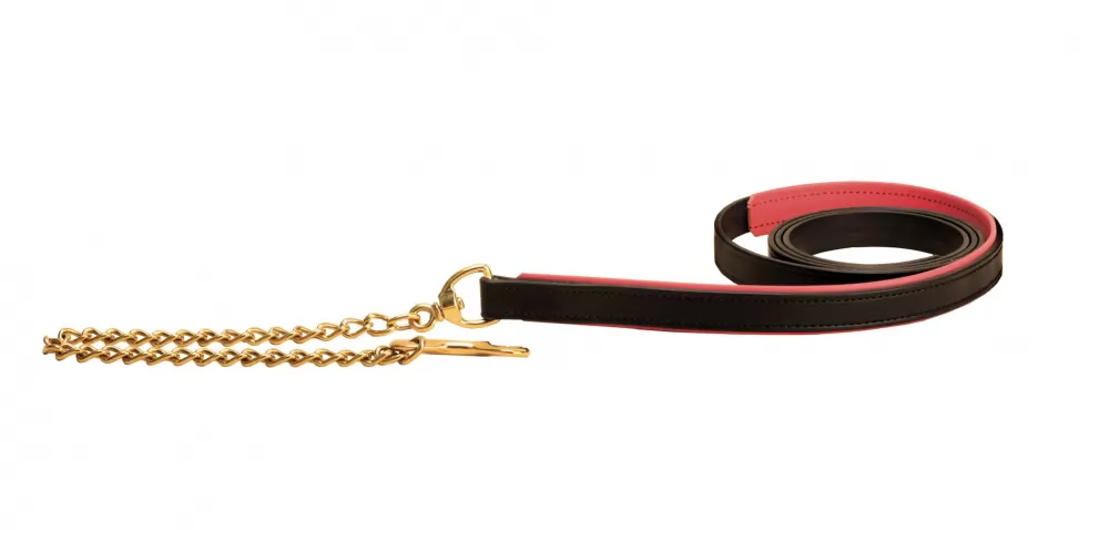 The Tory Leather 1″ Padded Lead with Brass Chain is a leather lead that has soft, rolled edge leather padding that backs the English bridle leather strap on the first 25″. This padding makes the lead comfortable to hold. This lead comes with a 24″ solid brass chain.. Tory leather products are made in the USA.