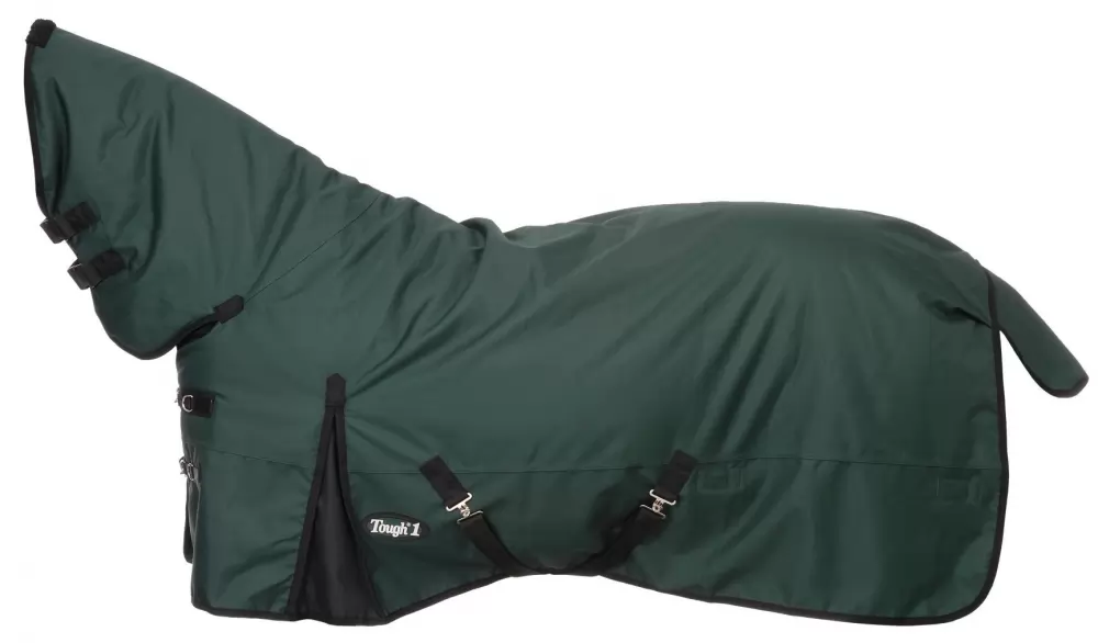 Tough 1 1200D Waterproof Poly Full Neck Turnout Blanket. Designed Without A Back Seam To Prevent Leaking. Made Of 1200 Denier Waterproof Ripstop Poly Outer Shell With 210 Lining, 300 Grams Of Poly Fill. Full Neck For Extra Warmth. Double Buckle Neck Closure With Loose Comfortable Fit. Crossed Surcingles With Elastic Ends. Adjustable Leg Straps With Elastic Ends. Adjustable Double Buckle Front With Snap Closure. Shoulder Gussets Allow Freedom Of Movement.