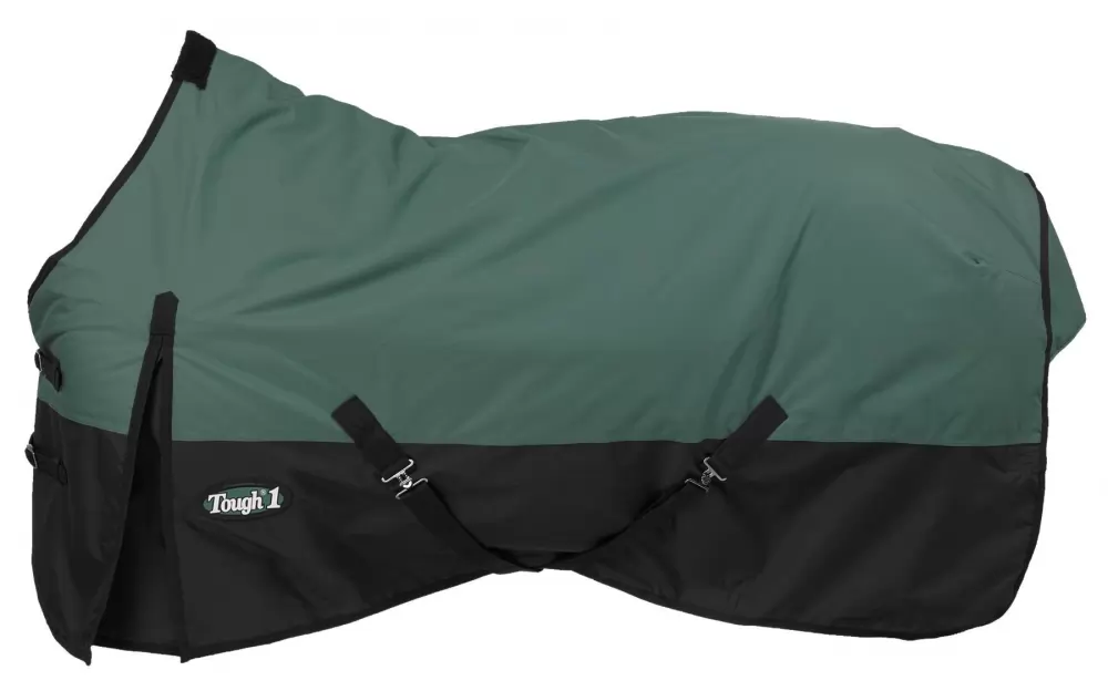 This sheet is great for that sudden rain shower at the show, camping, trail riding or just out in the pasture. This sheet is made of 600 Denier Water Repellent nylon with a 70 Denier lining. It features shoulder gussets, adjustable leg straps, double buckle closure front, crossed surcingle belly and tail flap.
