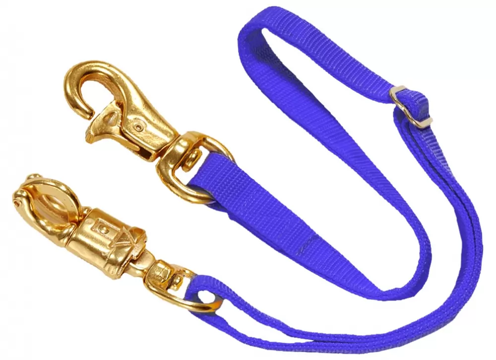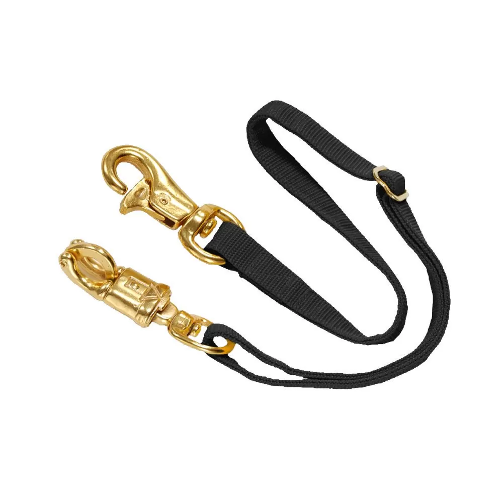 Adjustable flat polypropylene trailer tie. Double end stitched construction with heavy panic snap on one end and heavy Triggerbull snap on the other end. Fully adjustable with slide buckle.