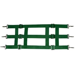 Heavy water repellent poly nylon, full zipper, double handles and two grommets on end for inserting steerhead for roping practice.
