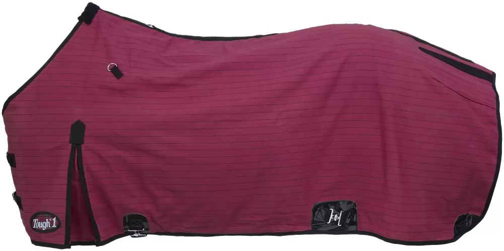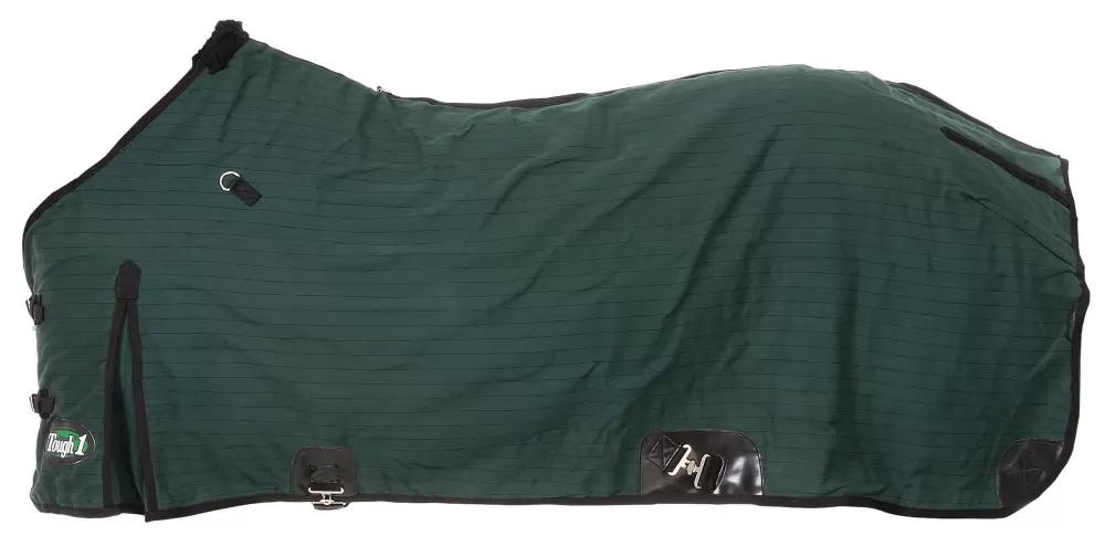 The Storm-Buster blanket is made from 15 1/2 oz. canvas material with an acrylic/wool blend lining and strong nylon web binding. The large shoulder gussets allow the horse freedom of movement and three dee rings at the neck offer optional neck cover attachment. Other features include: fleece wither protection, double buckle front closure, single belly surcingle and west coast style surcingle leg straps reinforced with leather for durability.