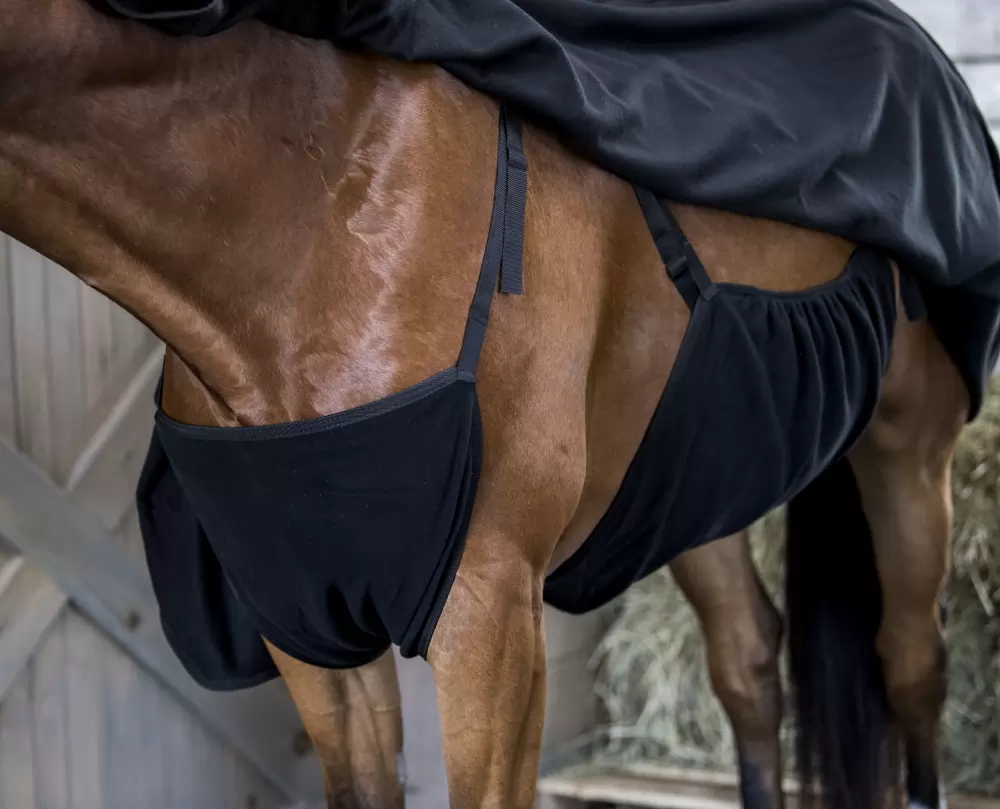 1. More Surface Area Coverage: Neck Cover and Belly and Chest Panels cover the areas where horses actually get sweaty and wet, thus eliminating the need for toweling off the underside of the horse.